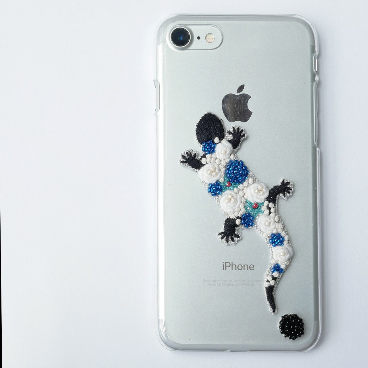 手刺繍シール ししゅール「ヤモリBK」刺繍ステッカー スマホアクセサリー 花刺繍 ワッペン